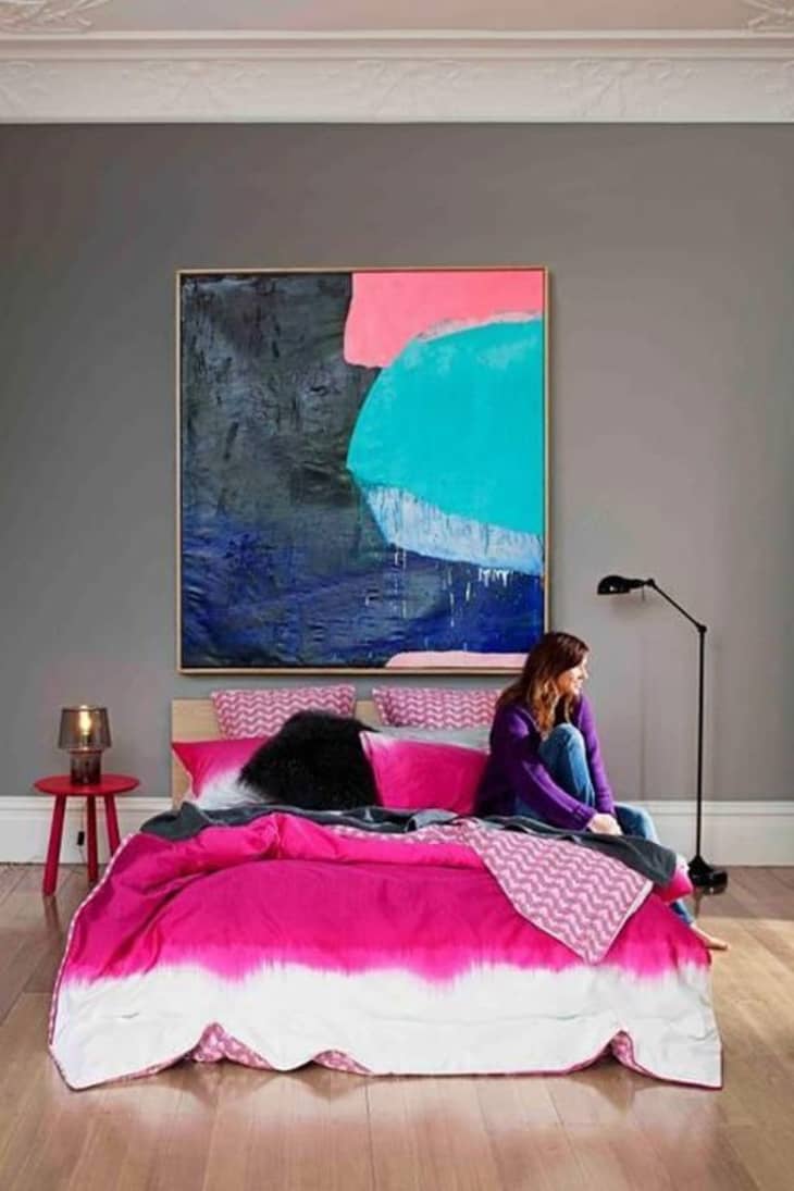 1. A colorful, abstract painting brings focus to the center of this vibrant bedroom. Real Living magazine featuring Andrew O’Brien artwork (available here)