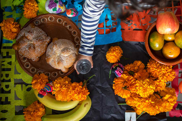 Many people would set up ofrendas (altars) — a tradition I found morbid as a kid, but can now acknowledge as a manifestation of love, life, and beauty. We’d clean the graves of deceased relatives and cover them with cempasúchil flowers (Mexican marigolds), candles, and offerings. As is custom at the start of November, we’d spend a few hours in the cemetery welcoming back the souls of the dead by commemorating them, socializing, feasting, and playing music.