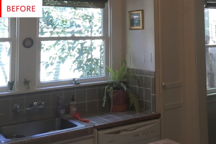 Our kitchen was a hodgepodge of poorly functioning features from various decades, including counters made from mud-colored tiles with crumbling grout that was impossible to clean, a continuously dripping faucet, and irregular cabinets with ill-fitting pulls that always fell out.