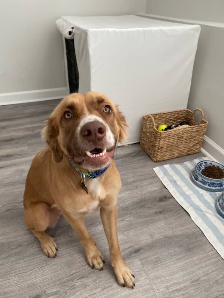 Long before adopting Parker, a golden retriever mix, Virginia resident Alicia Kihlander knew she didn’t want to display just any old dog crate in her apartment. “My style is very coastal with hints of Scandinavian elements, so most of my apartment is filled with white pieces, light wood tones, and neutral colors,” Kihlander explains. “The idea of having a huge black crate as a piece of furniture in my living room was just not an option.”
