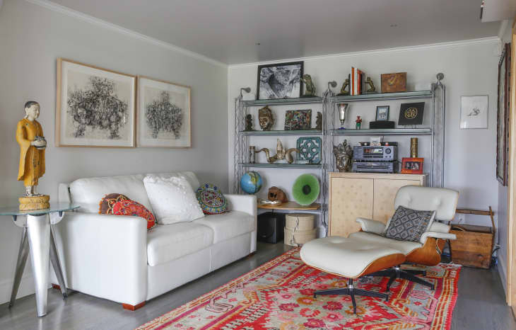 If you have an area rug, situate all seating so the legs are either completely on or completely off of it. Don’t let them wobble. Try not to position the rugs so edges and corners are in the major walkways. It lessens the chance that people will trip as they walk around.
