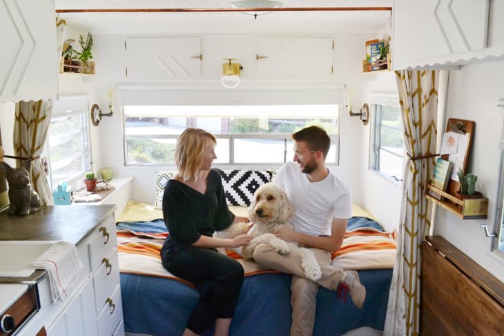 “We renovated our tiny home with plans to travel the lower 48 states for a year or more. We knew when we purchased our travel trailer that we’d have to get rid of almost everything and really pare our belongings down to just the essentials. While I know that downsizing for any tiny space is hard, it’s exacerbated when you travel because it’s in your best interest to carry zero extra baggage around,” says Mel.