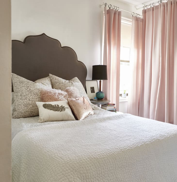 Nesting tables aren’t a new concept, of course, but you don’t typically see them in a bedroom, and you don’t often see mismatched styles like Derby’s either, which can add a nice layered look to a decor scheme. Her eclectic pair marry vintage appeal and function as well, making them an ideal solution for bedside storage without resorting to a bulky, more traditional nightstand.