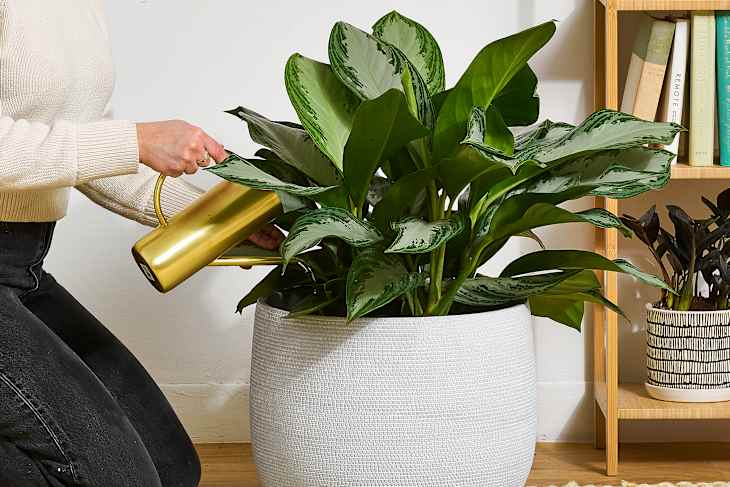 “If anything, indoor plants can get too much hydration, which leads to fungus and fungus-loving pests,” she notes. A standing watering date with your plants is a fabulous way to stay on top of things without being too overbearing, which plants don’t usually respond well to. (Pro tip: A cute watering can that goes well with your home design will entice you to remember to water your plants — and double as a fun decor moment.)