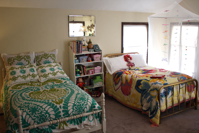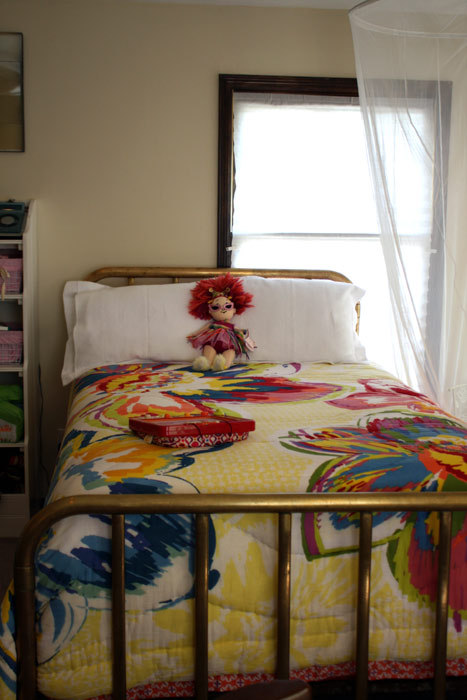 • All of Tuli’s and Elijah’s beds are from garage sales, and then they were all painted (the brass wash polished). Tuli’s other furniture all came from a thrift store, very close to my heart, in Oklahoma on the military post of Fort Sill. That’s also where I found most of the decorative plates and starburst mirror.
