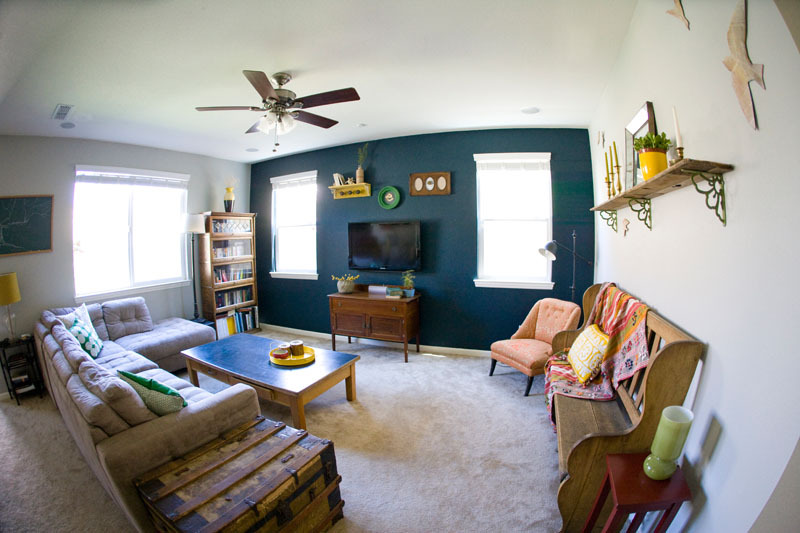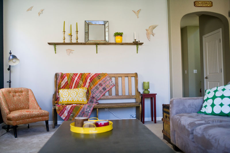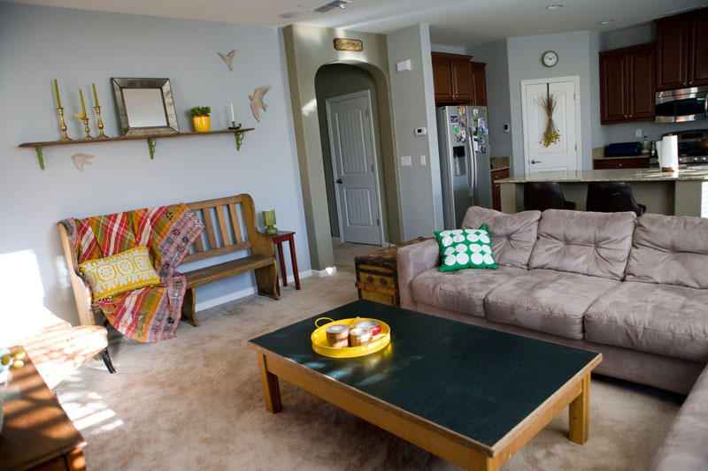 Ellie and Ed bought their first house about a year ago. While they would have rather purchased a good ol’ fixer upper, market conditions meant a brand new house made more sense. Fearing that her home would fall into the tract home rut, Ellie quickly set out to “make the new look old and add a little character to the cookie cutter-ness.”