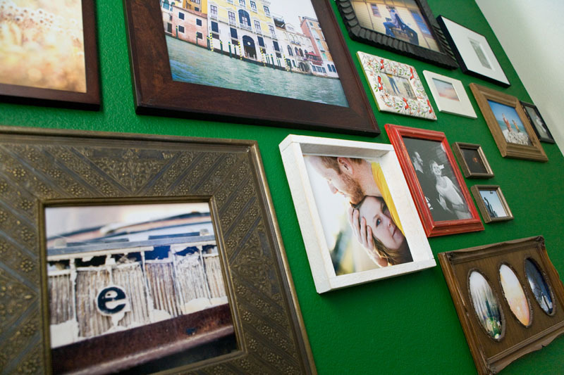 • The green wall of photos, that’s like 15″ tall. It was crazy to hang all those! A lot of those frames were thrifted or mirrors we turned into frames 🙂