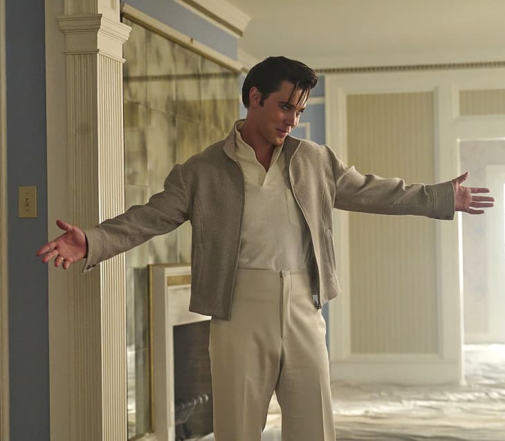 As for the interior sets, those were built on sound stages at Village Roadshow Studios, not too far from the reproduced exterior. The design team manufactured the decor themselves, including a 15-foot-long all-white sofa — much like the one that sits in the real Graceland today — which was quite the struggle to fit through the front door, as it was “a very tight fit.” Fortunately, Dunn and co. were able to successfully maneuver the furnishing. Following the conclusion of filming, “all [set] dressings were sold at auction earlier [this] year.”