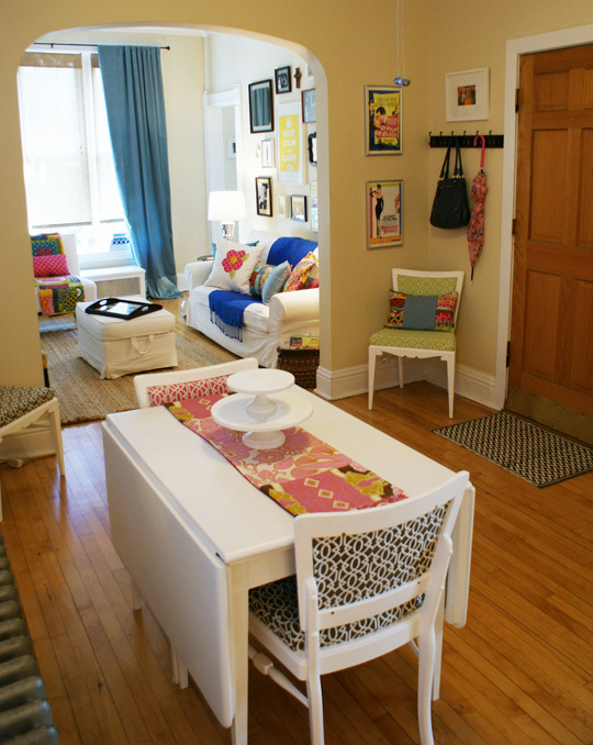 Proudest DIY: The dining room table and chairs are by far my most prized project to date. I scoured Craigslist for months looking for a drop-leaf table that would take up a small amount of space on a daily basis, but expand to seat 8 or so. I finally found one in my price range – and with four chairs! It was pretty ugly, but I have refinished furniture before and decided I could learn to reupholster, too. I blogged about the whole process, too. It was quite the endeavor!