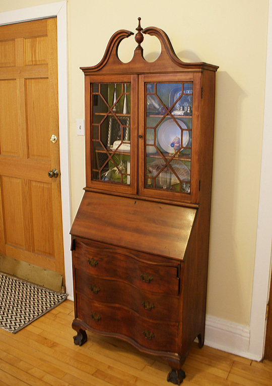 Had forever: I started from scratch when I moved to Chicago seven years ago. I showed up with a vintage bed I had refinished with my mom after graduation, and that was about it. (That’s the bed in the guest room.) Spending my college years in the sorority meant that I barely had dishware to my name and certainly no furniture of my own. But that doesn’t mean there isn’t some history in my décor. The secretary desk in my dining room has been in my dad’s side of the family for four generations. I’d like to refinish it one day, but until then I added my own personality by lining the cabinet with sticky gift wrap from Hallmark.