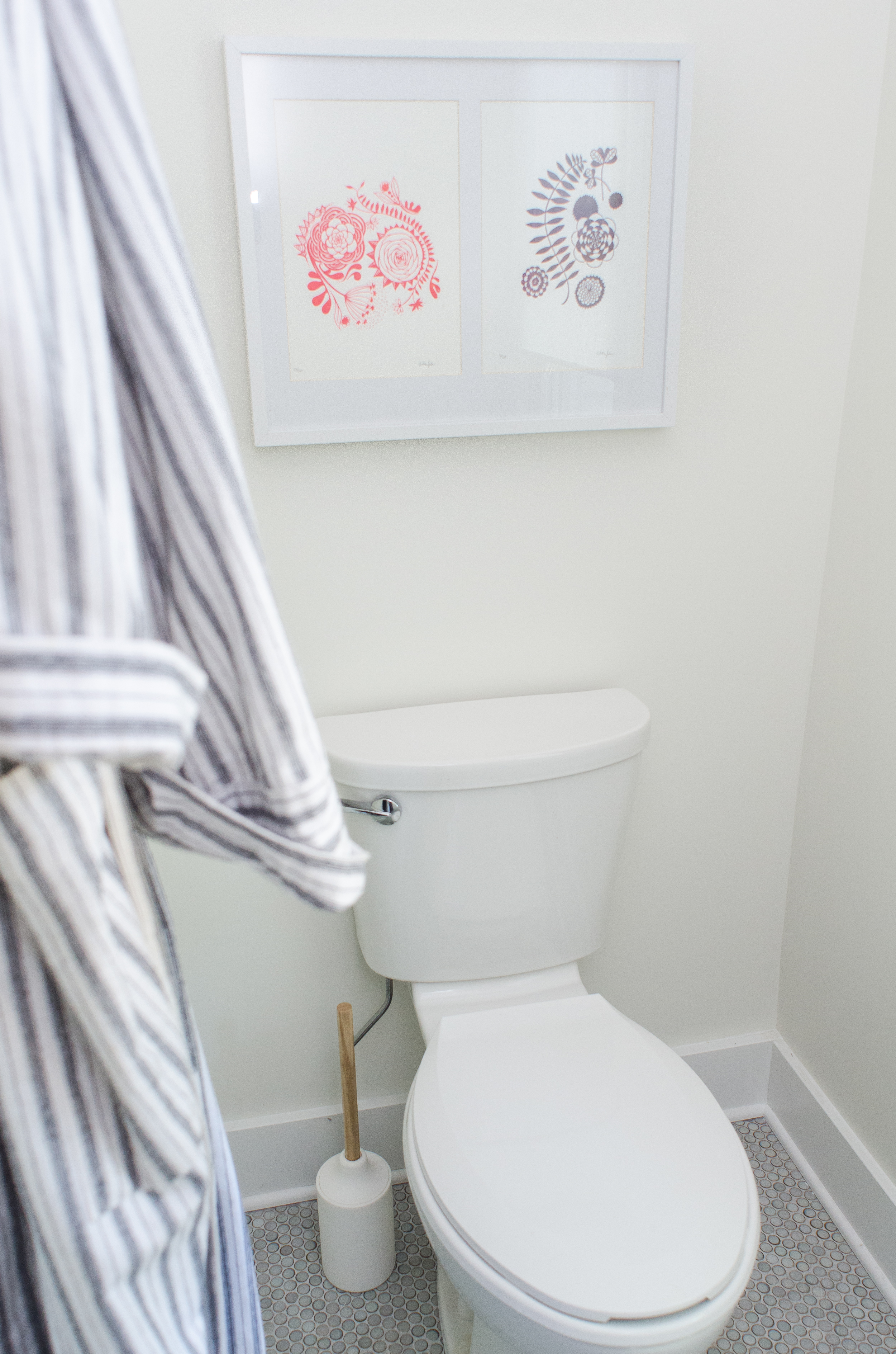 One other design decision we made about the shower: the shower glass is set into two channels, one at the bottom and one at the side. The default channel finish is chrome, but we paid about $100 extra for it to be powder-coated white. This seemed a little extravagant in the moment, as we were cutting costs everywhere we could at the end of our very long project. But we already had all the chrome I wanted in the shower and faucet trim, and I thought the white would look cleaner against the tile. I’m so glad of this decision — I think if we had gone with chrome it would have bugged me every day.