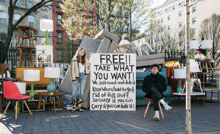 To make others aware, they partnered with furniture subscription company Feather who agreed to donate used furniture to make up their installation in NYC, a place that is used to seeing sidewalk furniture. “It’s so ubiquitous seeing furniture on the streets in New York, you don’t even think twice, so we wanted to create a heightened version of it,” Ellie told Apartment Therapy. “Take on something that we see every day but put a magnifying glass on it to get people thinking about it like okay, throwing out stuff is fun but where does it go?”