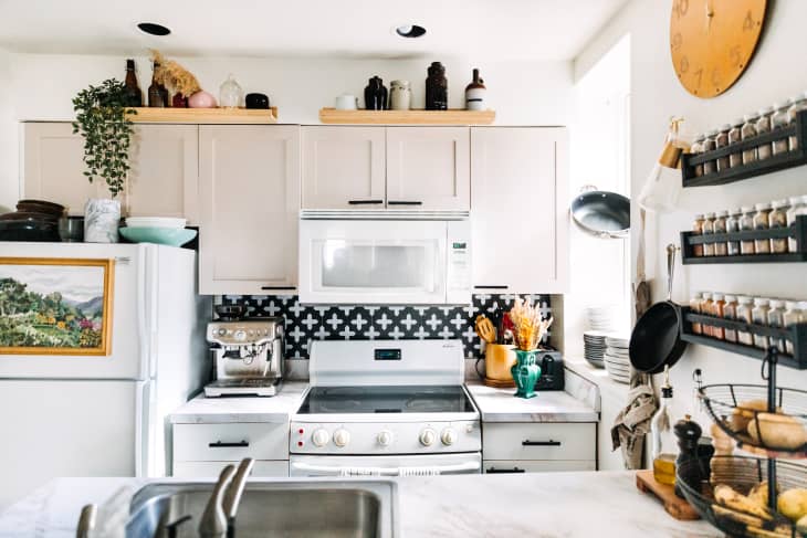 While the kitchen is probably one of the most fun rooms in any home (because: food), it can also look a bit… blah. With so many cabinets, appliances, and gadgets, the space can emit total utilitarian vibes that go against the how inspirational a kitchen should be. In order to combat that phenomenon, TikToker and Instagrammer Sourya Venumbaka of Sové Home wanted to add some personality to her rental kitchen after moving into her Philadelphia apartment. (Check out her full house tour here!)