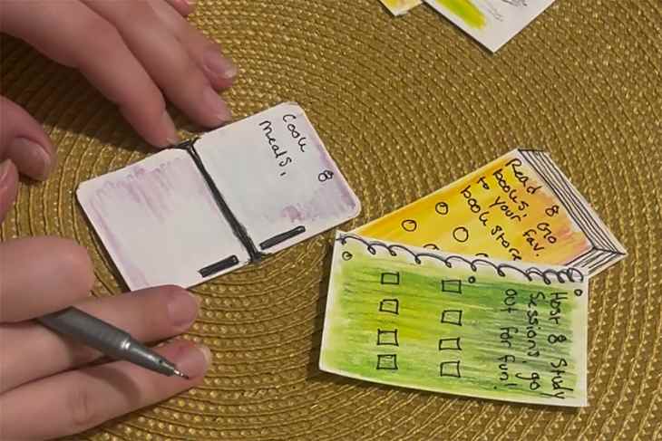 In a Reel, Emilia Marie demonstrates with friends how easy this DIY is. The video shows how versatile the cards are for whatever activity you’re looking for some extra incentive to complete (or, you know, get started on). To make them you just need card stock, scissors, colored pencils/markers, and a fine-tipped pen.