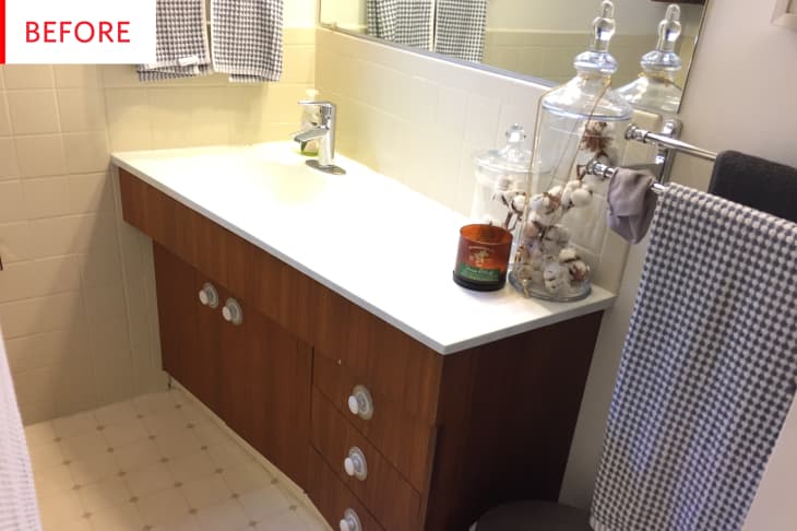 This little ’70s bathroom had some serious space limitations, poor ventilation, and failing plumbing. Though its owner admired some of its best features—that teak vanity!—it was time for a functional overhaul and a major makeover.