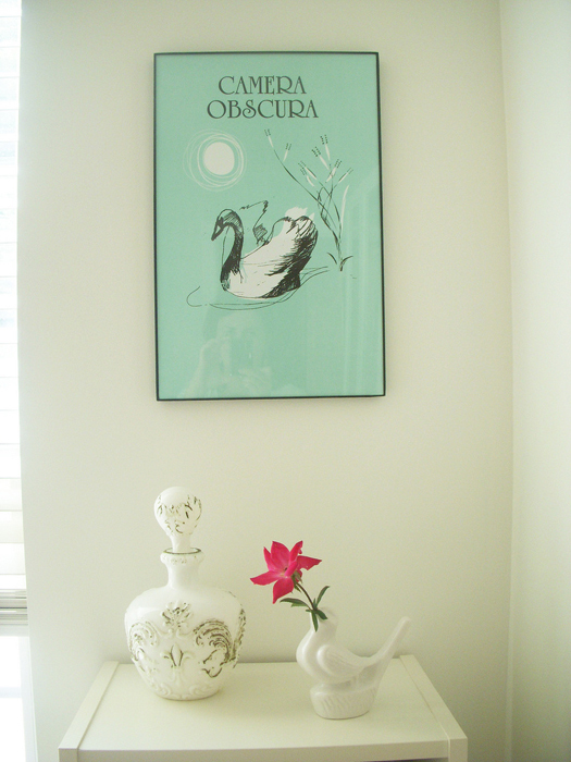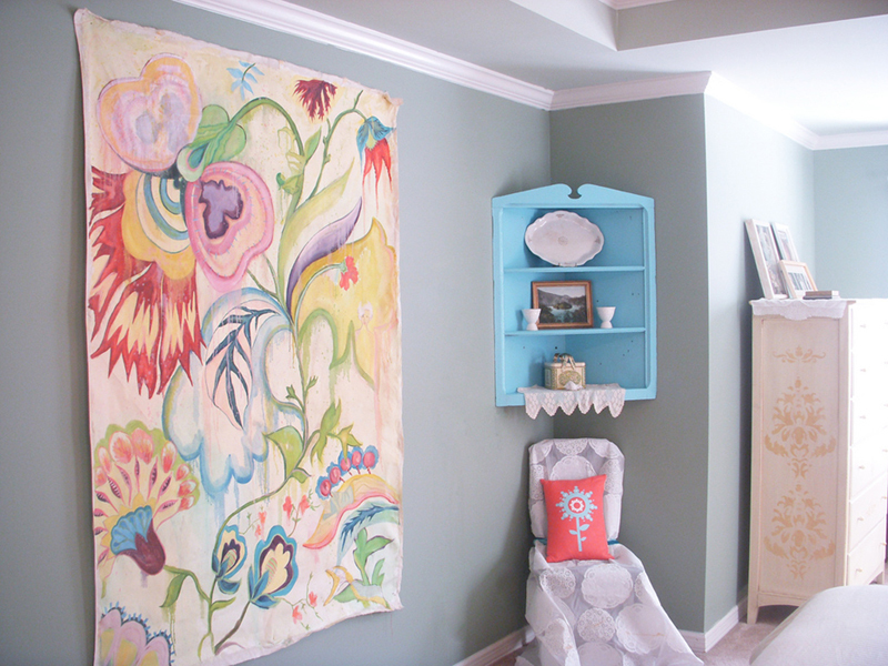 Artwork: My own-left over from art school , Flea Market, and made by friends (who are also artists) – one year I had a birthday party in a gallery and asked friends to make me art as a present. (great way to fill walls with unique art).