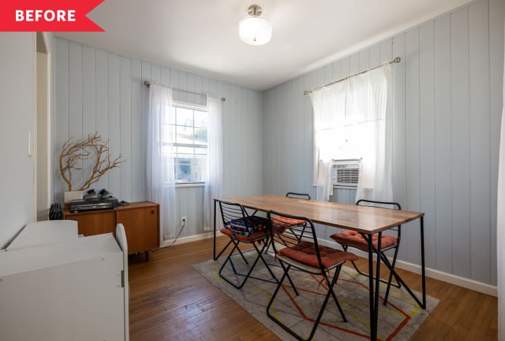 The original dining room lacked space and personality. Deschanel decided to build a dining banquette for the family to enjoy their meals together, which ended up being both space-saving and a design moment.
