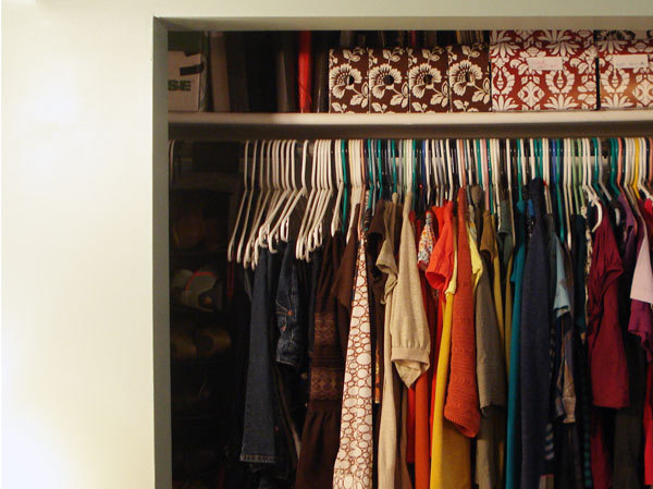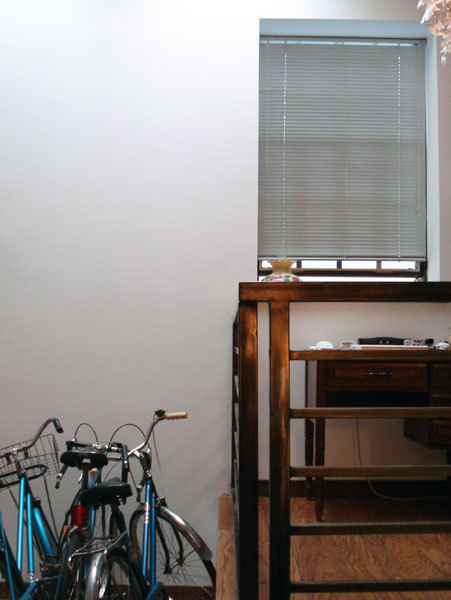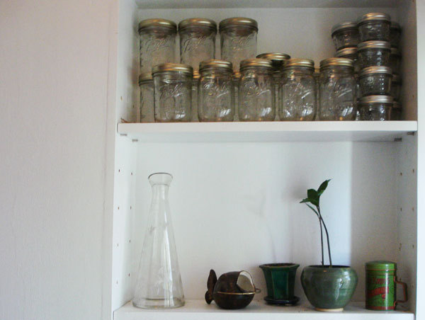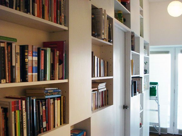 Proudest DIY: When we first moved in, (B plus former roommates: Dave & Matt) built a removable pressure-fit wall that has shelves on both the hallway and bedroom sides. We built it because there was enough space to have a third bedroom and create a hallway out to the back porch. It provides us with great book shelves and plenty of extra storage.