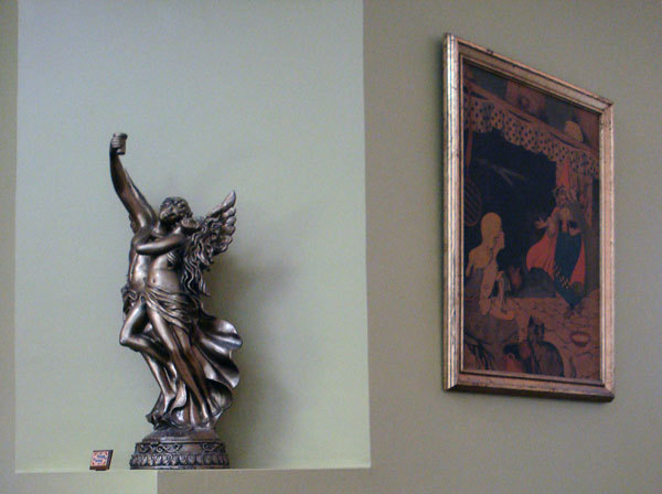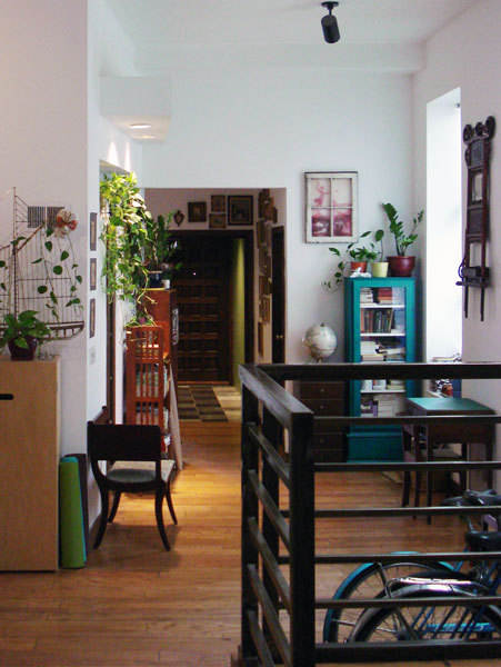 The space itself is also one-of-a-kind. According to their landlord, it was a nightclub in the 50s and 60s, which may help to explain the odd angles and split levels. Rather than trying to cover up the apartment’s idiosyncracies, the roommates have worked with the space. Ornate frames surround vents; thrift store sculptures decorate the oddly placed nooks; and a diverse mix of antiques and salvaged furnishings mirror the space’s anything-goes aesthetic. We found intriguing details and good ideas at every turn.