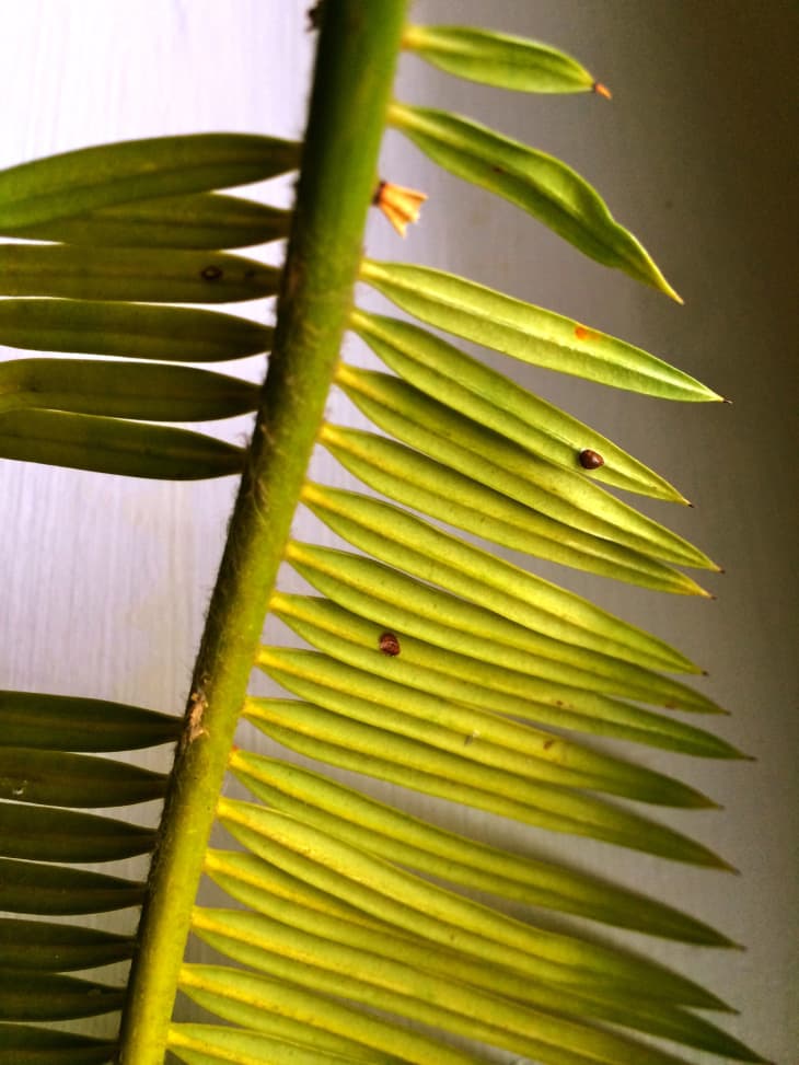 Notice the raised, brown growth on my Sago Palm. This is an example of scale.