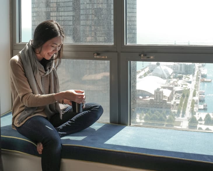 Newlyweds Franke and Jason, and their dog and cat, share a studio apartment in a Chicago high-rise. They love the location — and the views are killer — but as anyone who’s ever shared a small space knows, it’s not always sunshine and rainbows. In fact, there are three challenges that can be a bummer for small space dwellers in particular: Pets, Parties and Possessions.