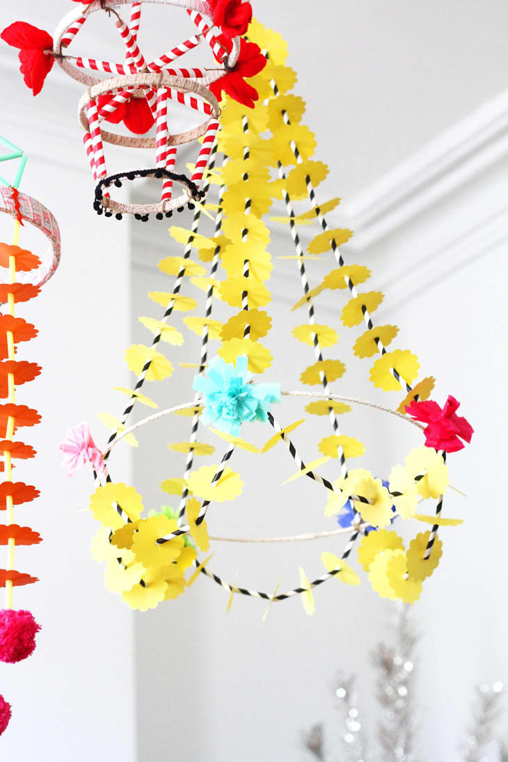 Note: About halfway through the project I pulled out my 7 cm plastic needle and started using it to string the paper and straws together. This made the garland come together much faster than simply stringing it by hand! Another way to speed things up: clip a coupon to your local craft supply store and splurge on a flower die cutter. This saved me from hours of work and helped the overall piece look really consistent, which was super satisfying!