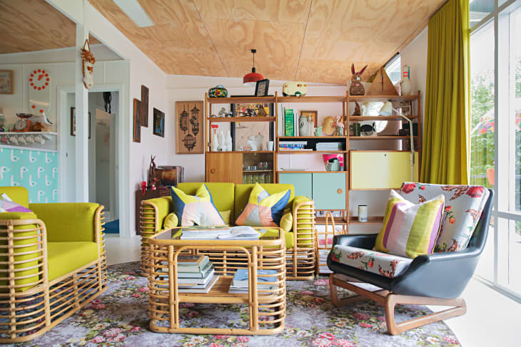While this isn’t a ceiling treatment, adding soft things — pillows, upholstered furniture, and rugs — helps to absorb noise. Parks also recommends staging bookcases beneath the source of the noise, which “helps dampen reflections and reduce noise transfer within a space,” he says.