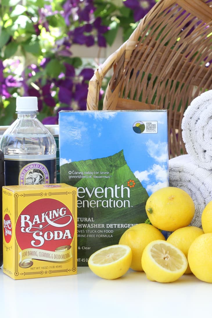 3. Dishwasher detergent. We wouldn’t suggest buying dishwasher detergent solely for laundry, but if you already have it on hand, you can use it to whiten fabrics. (To be eco-friendly, be sure to choose chlorine- and phosphate-free detergent.) Add 1/4 cup of dishwasher detergent along with your regular laundry detergent.