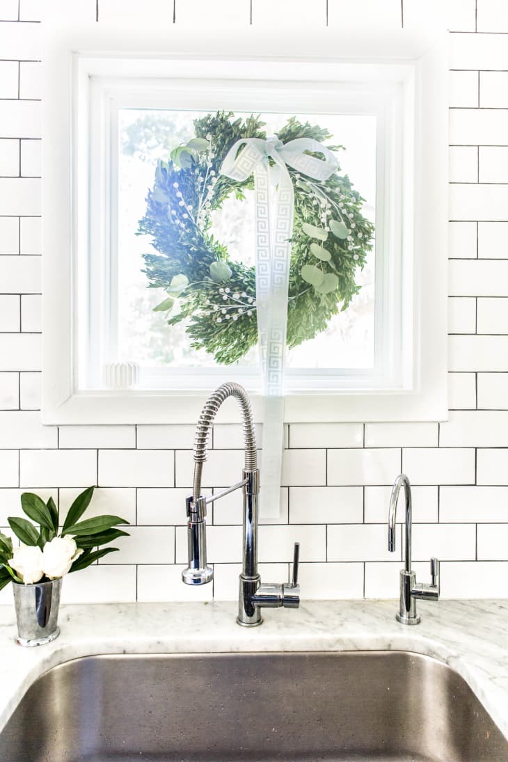 With design trick, you might have neighbors singing, “How much is that wreath in the window?” Backlit with plenty of sun, any wreath with look extra special hanging from a window. In this Austin, Texas, bungalow, a festive wreath is placed on the window above the kitchen sink, which makes for a nice view while doing such a mundane chore like the dishes.