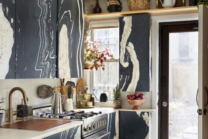 White lives in a 600-square-foot apartment in Brooklyn, New York, that she’s been renting for more than two years. If White looks familiar, that’s because she previously lived in a unit a few floors up in the same building but decided to relocate to a bigger apartment after one of her neighbors moved out. “Moving downstairs into a two-bedroom unit with a dedicated dining area, in-unit washer and dryer, and private outdoor space was an incredible opportunity,” White says. And thanks to the rapport that she had already established with the landlord, White was allowed to repair and redesign her new apartment with few limitations.