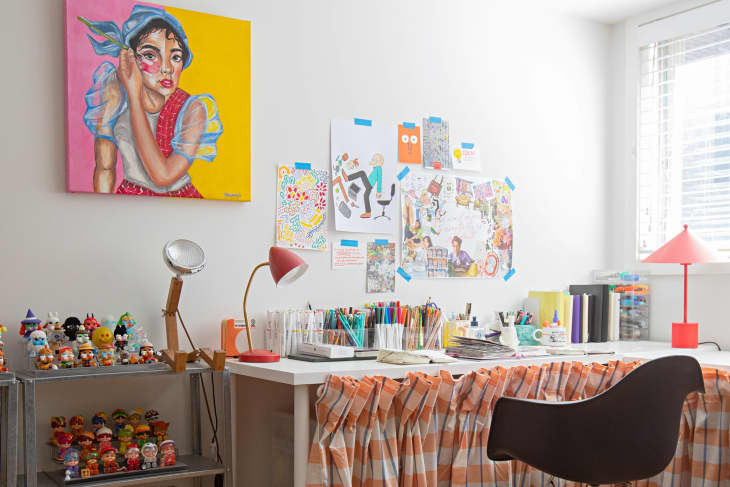 The end result fits fabulously into Ocamp’s eclectic style and makes it easy to access her supplies — all she has to do is sweep the curtain aside. The best part about this hack, of course, is that you can play around with different fabric lengths, textures, and patterns to suit your own style.