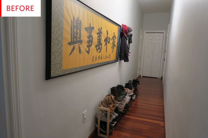 I had tried to make the entryway nice with two industrial shoe racks, but my husband and I have so many shoes that the hallway always looked cluttered and disastrous which is not a particularly great first impression. Our hallway is also so narrow that we were tripping over shoes all the time!