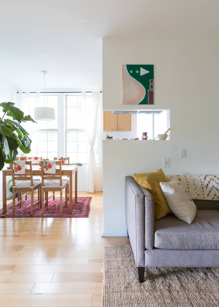Visually connect your kitchen with your dining area using a pony wall that features an interior cutout, as this New York City homeowner did. No need to frame out your cutout with an actual window in this case, as the non-kitchen side is the perfect spot to create a little breakfast bar by pulling up a few dining stools. This way, anyone in the kitchen can stay connected with potential guests at the breakfast bar or in the living room, for example.