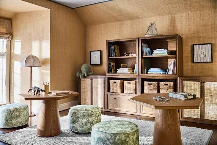 Eagle eyes will recognize Arnold’s sold-out tapestry-like Harrow Pillows from his first Crate collection in 2023, now recast in all-weather recycled fabric and a lighter olive colorway. The Everette Upholstered Bed would be the perfect addition in a kids’ room where you’d want the furniture to evolve as your child grows up. Its shape ever so slightly references Arnold’s best-selling Caldwell Upholstered Storage Bed.