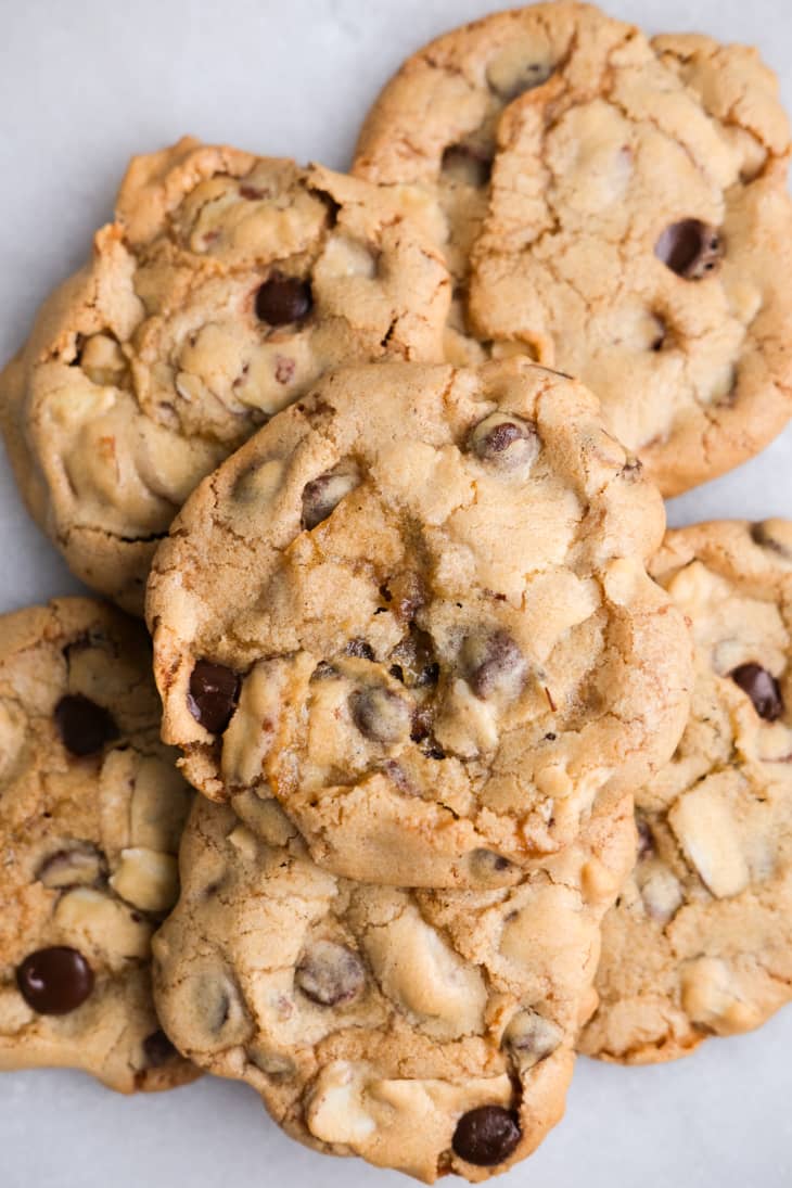 Scoop a 2-inch sized cookie dough ball and place onto the prepared baking sheet. Be sure to give the cookies enough room — they will get much bigger. I recommend baking eight cookies per sheet pan to give them enough space.