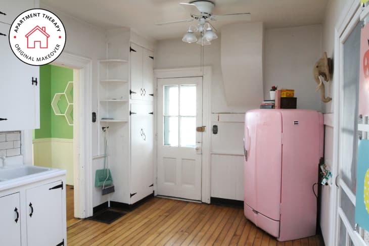 The kitchen before was totally adorable—part of an old house in small town Illinois, owned by one of our freelancers, Ashley Poskin. It had tons of vintage character and charm, but needed a bit of an update, especially because she planned to put it on the market to sell. Our goal was to make it more appealing to potential buyers, without spending a ton of money up front.