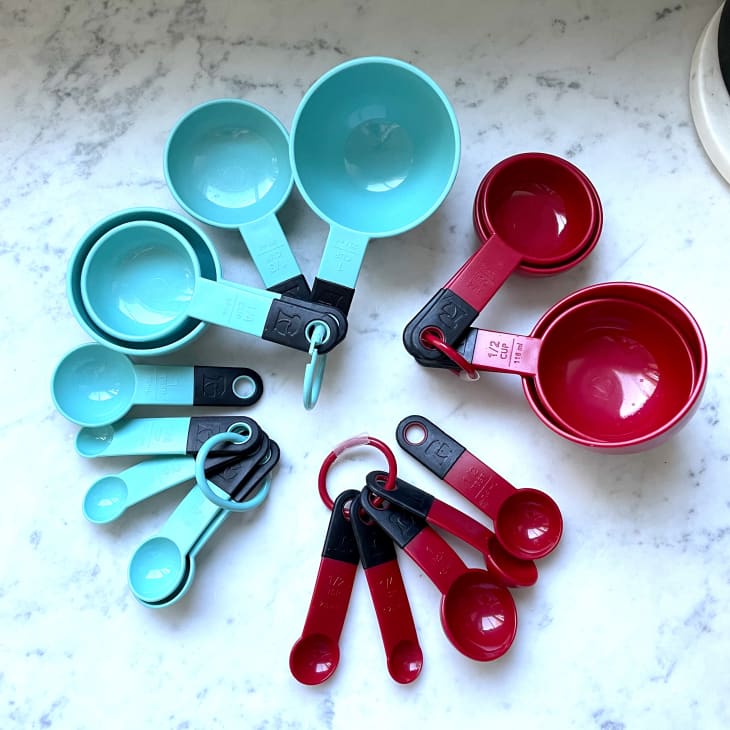 We have three sets of measuring bowls, cups and spoons from KitchenAid in red, blue, and green that make mise en place and recipe prep so much simpler. (We have all three because the pareve set comes in super handy for making non-dairy desserts, something kosher families often try to do when having a meat main course.) You can also find great tri-color versions on Amazon!
