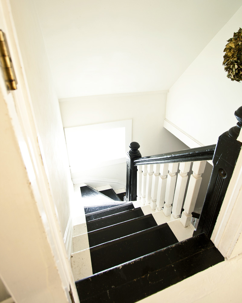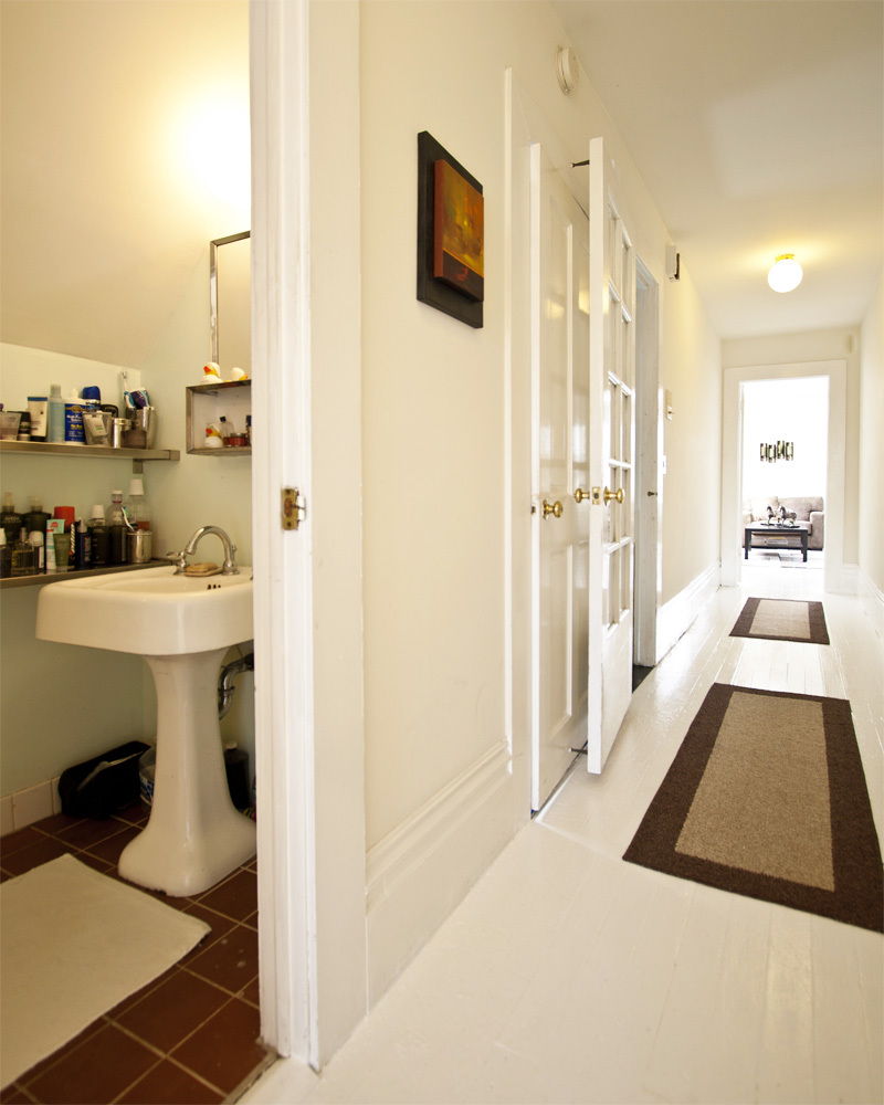 As one enters the second floor, there is a sense that a sort of heaviness is lifted. Inspired by the immense amount of light the space receives during the day, the roommates decided to paint the majority of the floors (less Michael’s room) a glossy white. With an almost Scandinavian sensibility, the bedrooms of the second floor feel light, airy and comfortable (a big thanks to the amazing skylights for that!). Due to the two levels and the size of the space, the styles of all roommates can be explored without feeling like a collection of disparate spaces.