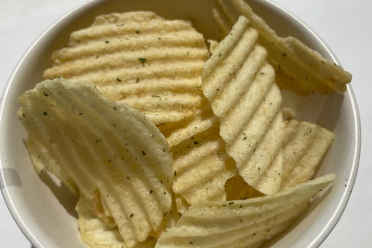 To recreate the creamy dip, Lay’s Wavy Tzatziki Chips are made with buttermilk, onion powder, sour cream, yogurt, and garlic powder — and let me tell you, it hits. The flavor is spot-on and captures the essence of tzatziki perfectly. Both the dill and cucumber come through. This was by far my favorite of the three, and many staffers at The Kitchn agreed.