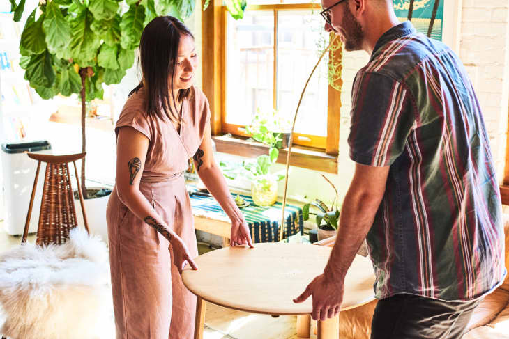 She recommends placing side chairs, cocktail tables, and other smaller items after you’ve placed larger items like the sofa.