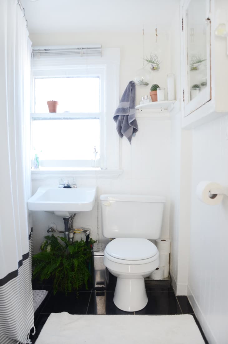 Looking back, I realize my landlord made some pretty crafty renovation moves to achieve this impressive feat. Find them below, plus a few other tricks to making a tiny shower or tub seem double its size.