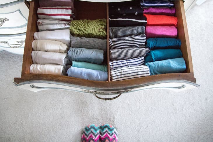 I put on my favorite podcast and really dug in. I organized my clothes based on categories, thickness, and color. I’m not sure if clothes based on temperature—colder to warmer, right to left—is Kondo-approved, but it worked for me. As I pushed on and painstakingly folded every t-shirt I own, I kept waiting for that spark of joy to hit me. It’s like I wanted a switch to flip inside me that would take this whole process from agonizing to enjoyable.