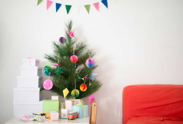 And this DIY tree-shaped wall hanging is so easy to make in an afternoon. All you need are several pieces of garland (either real or faux) and some removable wall hooks.