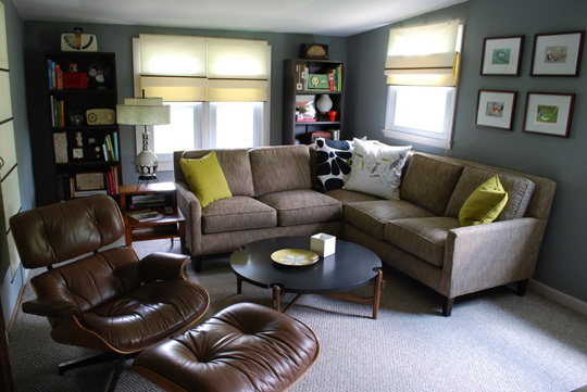 Couches: The smaller sofa in the living foom is the “Bantam” from Design Within Reach, which we purchased as a floor sample. The two-piece sectional sofa in the TV room we custom ordered from Thomasville.