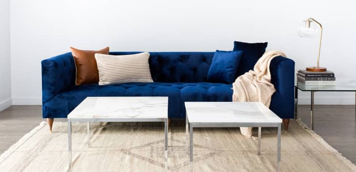 I am so excited to announce the official debut of Ms. Chesterfield, a modern, feminine version of the chunky old Chesterfield. It’s also the newest piece in a continued collaboration between Apartment Therapy and Interior Define. I got to see it in Chicago two weeks ago, and it is truly beautiful. I know I gave you all a little sneak peek in my Daily Find Instagram story, but now that we are officially launched I can really dive into the details and inspiration behind this collaboration with more pics below.