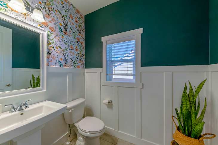 As for wallpaper, any avid reader of Apartment Therapy knows that some of the most gorgeous bathroom renovations use wallpaper. That said, if installed incorrectly, paper wallpaper can peel off over time when exposed to consistent humidity. Another way to avoid that? Opt for a vinyl wall covering instead, like this peel-and-stick option from Tempaper & Co.