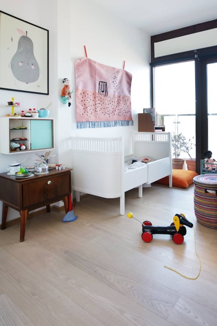 How would you describe the look and feel of this room? The look is Denmark in the 50’s and 60’s with a lot of teak wood and mint, orange and pink colors. I like kids’ rooms with color, but I don’t like too many different colors in one room. I think it looks messy because all of the toys are also very colorful. So I let the mint be the basic color because I think it is fresh and not too girly. The last thing I wanted was a princess room.
