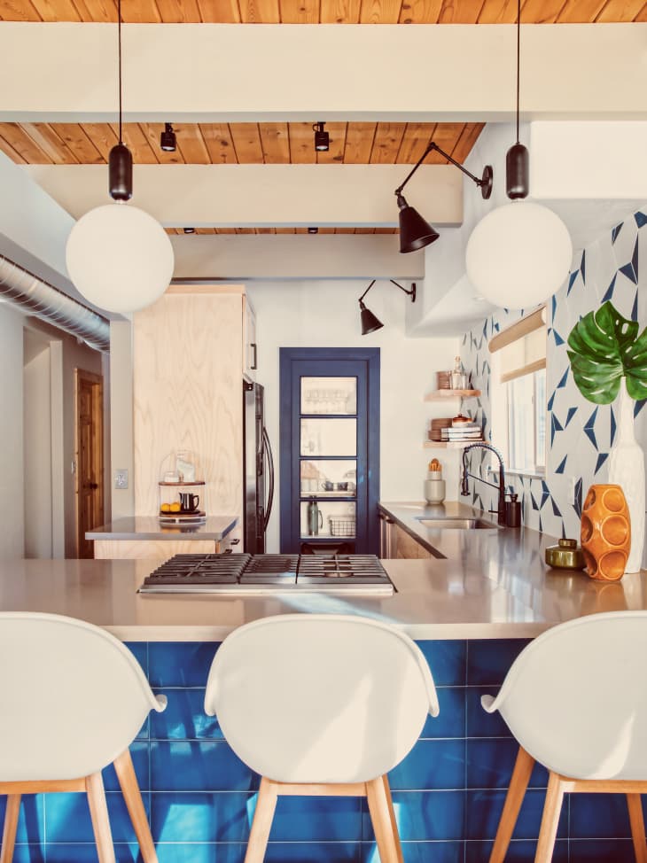 Korolova also recommends under-cabinet lighting to brighten up the kitchen. These stealthy fixtures can be used to highlight a decorative backsplash or to supplement ambient lighting — or both. “In my own kitchen, I have sensor lights under some of my cabinets. And I leave them on at nighttime when I want some extra light, or if I’m watching a movie, for background light,” she says.
