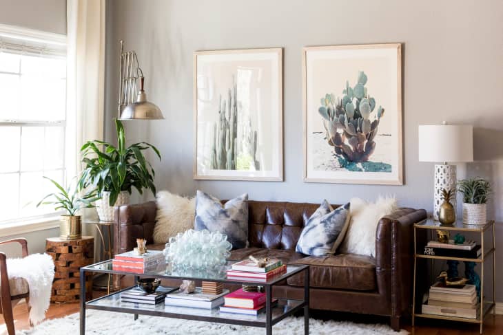 We love this gilded beauty on wheels, which can be used to display your carefully curated barware collection or serve as a coffee cart. For those who are all about coordinating, there’s a matching side table and coffee table too.