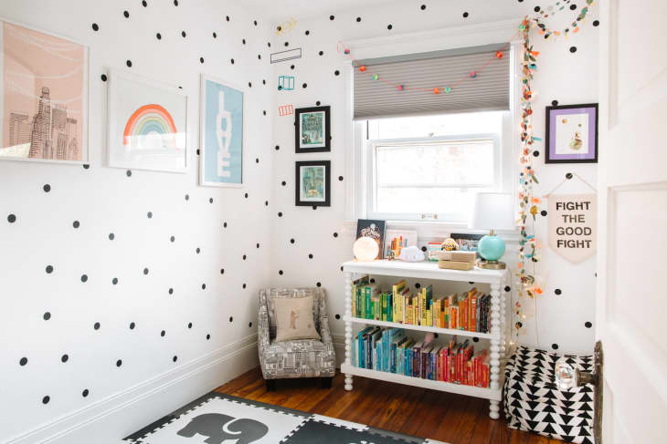 Rainbow ordering kids’ books, whether they’re board books, picture books, or chapter books, turns a bookshelf that could look disheveled into an intentional space. It creates visual interest and conveys order. On top of all that, just like in our old place, my kids can go straight to the book they want.